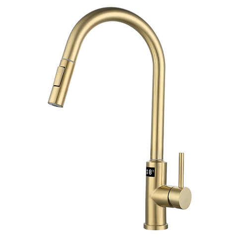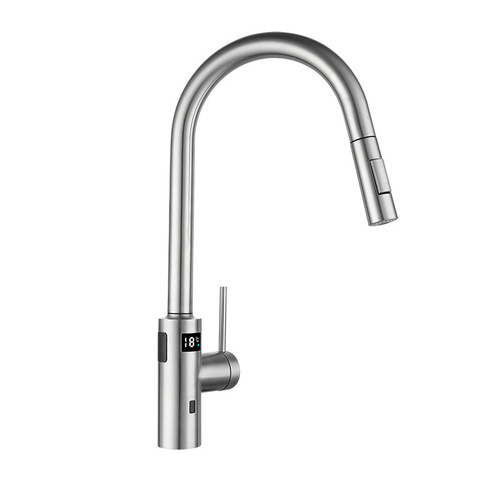 Paslanmaz çelik akıllı otomatik dijital ekran kızılötesi soğuk ve sıcak sebze lavabo Pull-out mutfak musluklar musluk bataryası