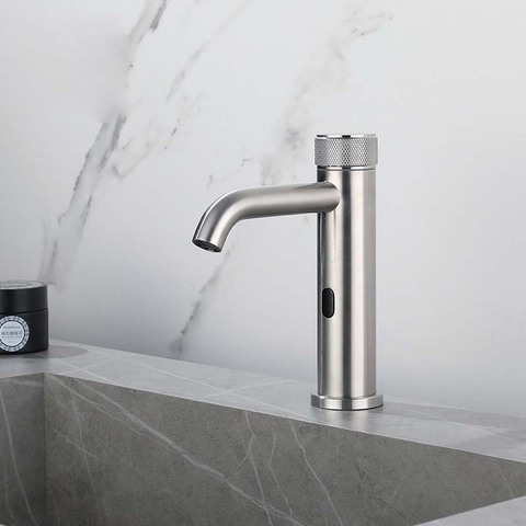 Paslanmaz çelik çift kontrol soğuk ve sıcak indüksiyon kızılötesi banyo tek delik yıkama indüksiyon sensörü havzası musluklar dokunun