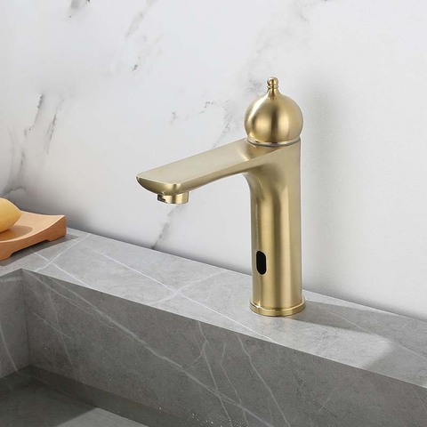 Paslanmaz çelik altın otomatik sensör banyo soğuk ve sıcak su kızılötesi havza musluklar mikser evye musluğu