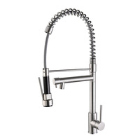 304 Stainless Steel Brushed Pull-out Spring Sink Dual Outlet Rotating Cold and Hot Kitchen Vegetable Washing Basin Faucet