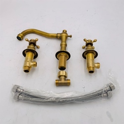 Kẽm với đồng thau phong cách Châu Âu cổ lưu vực vòi nước nóng và lạnh Retro chậu rửa lưu vực chống giật gân Vàng vòi